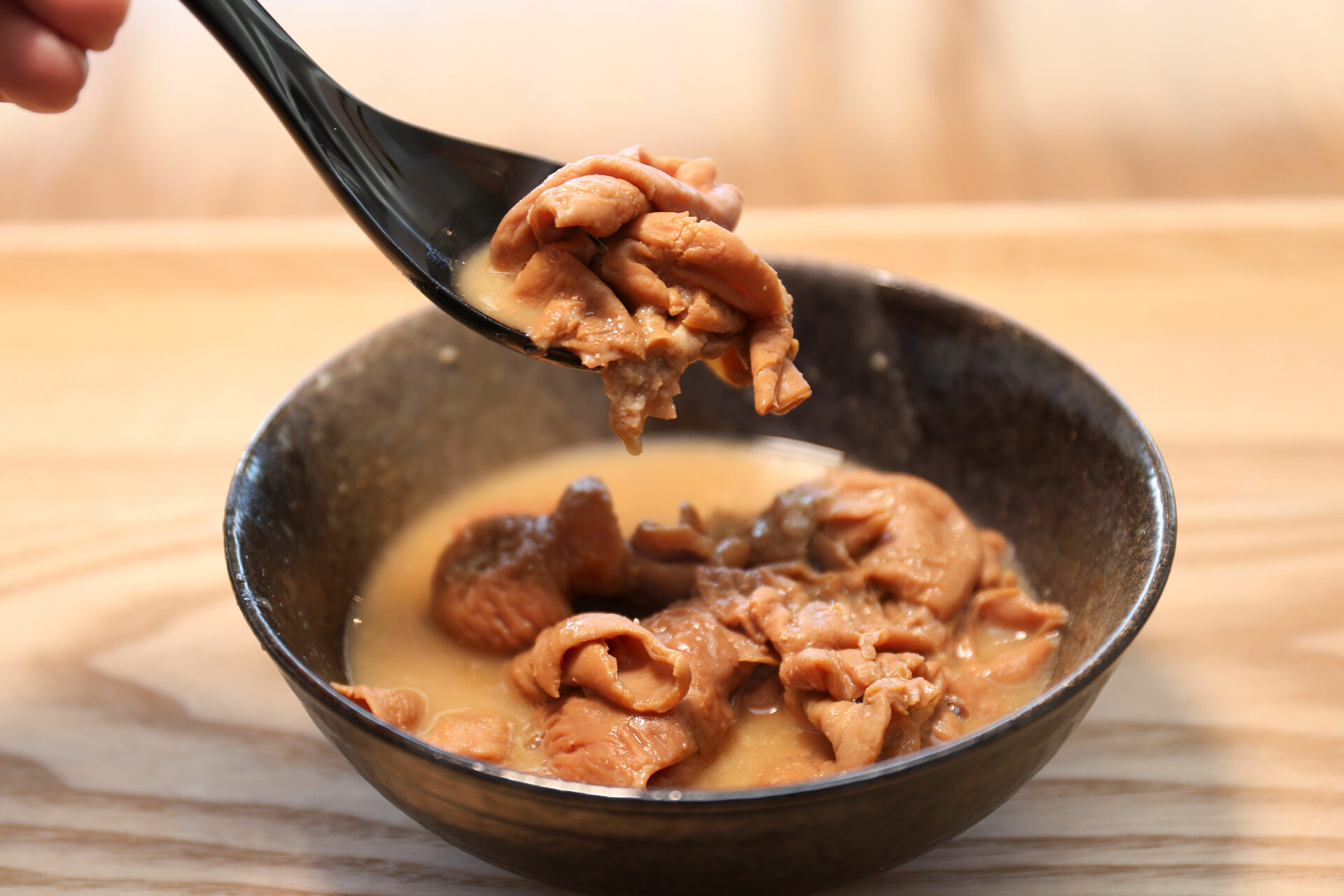 当店では、豚の大腸のみを使用し鮮度の高い生の状態で仕入れ、下処理・切り分け・下茹で・煮込みまで、すべて店内で手作業。完成までにかかる仕込み時間はおよそ10時間。手間ひまを惜しまない工程が、臭みのない澄んだ旨みと、とろける食感を生み出しています。