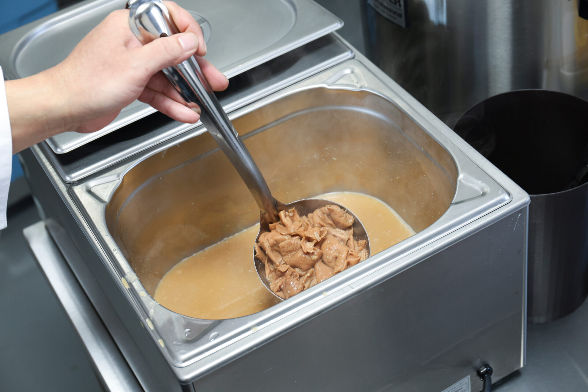 当店のモツ煮は、ご注文後に真空パックすることで、風味や美味しさを閉じ込めています。